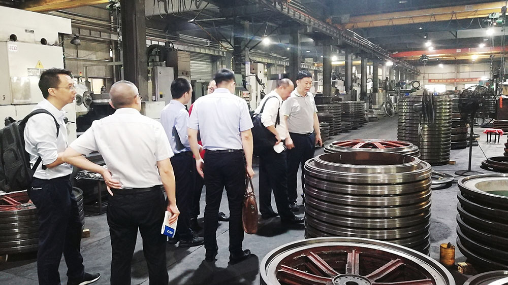 會后,在董事長傅開實陪同下,專家組一行人走進車間,深入了解公司的生產情況以及針織大圓機的制作工藝。