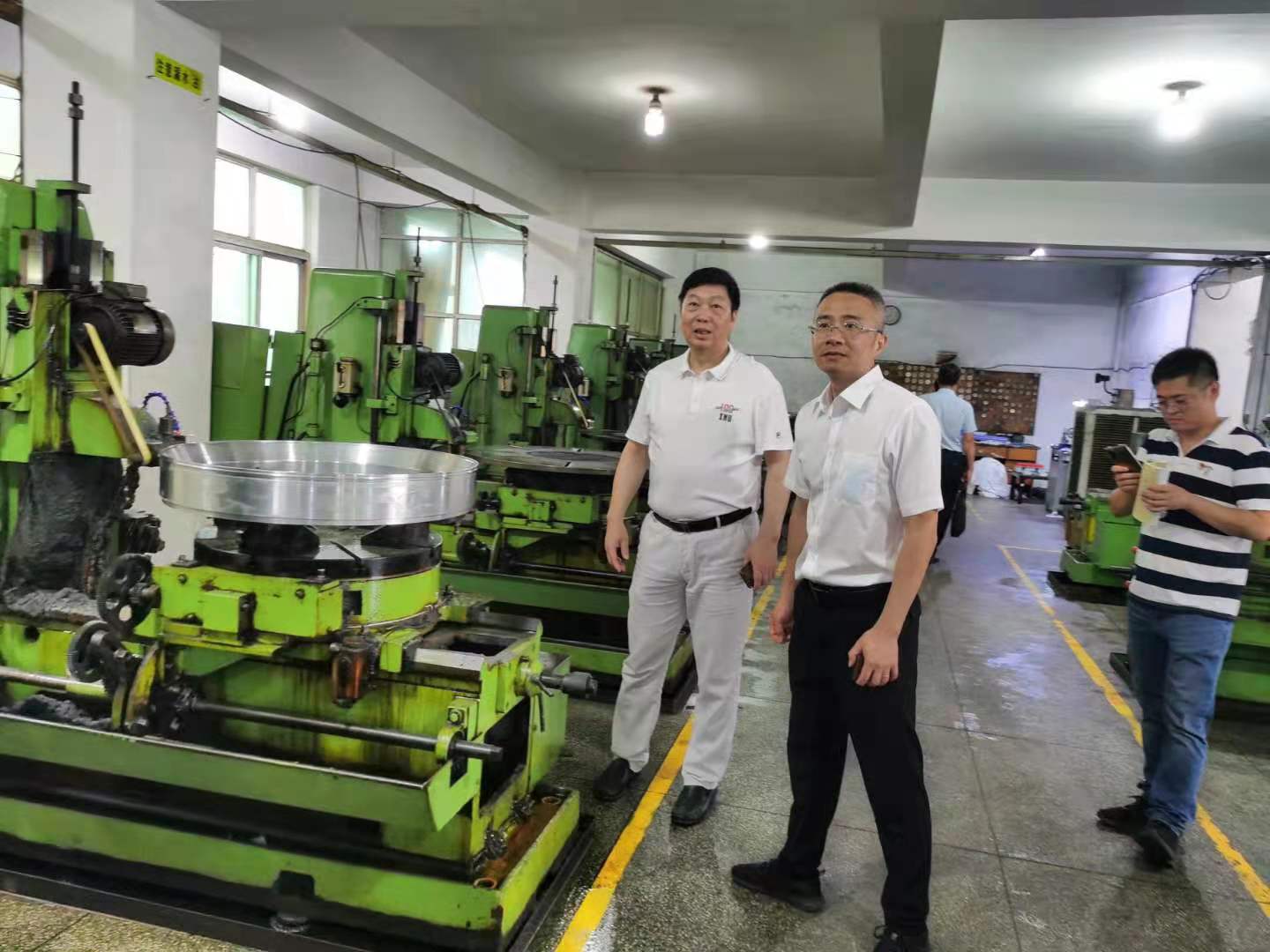 7月24日,代區(qū)長王克思、區(qū)政府辦主任李曉東、常泰辦事處社會事務服務中心主任陳鵬翔一行蒞臨我司調(diào)研指導,佰源機械公司董事長傅開實等領導陪同。